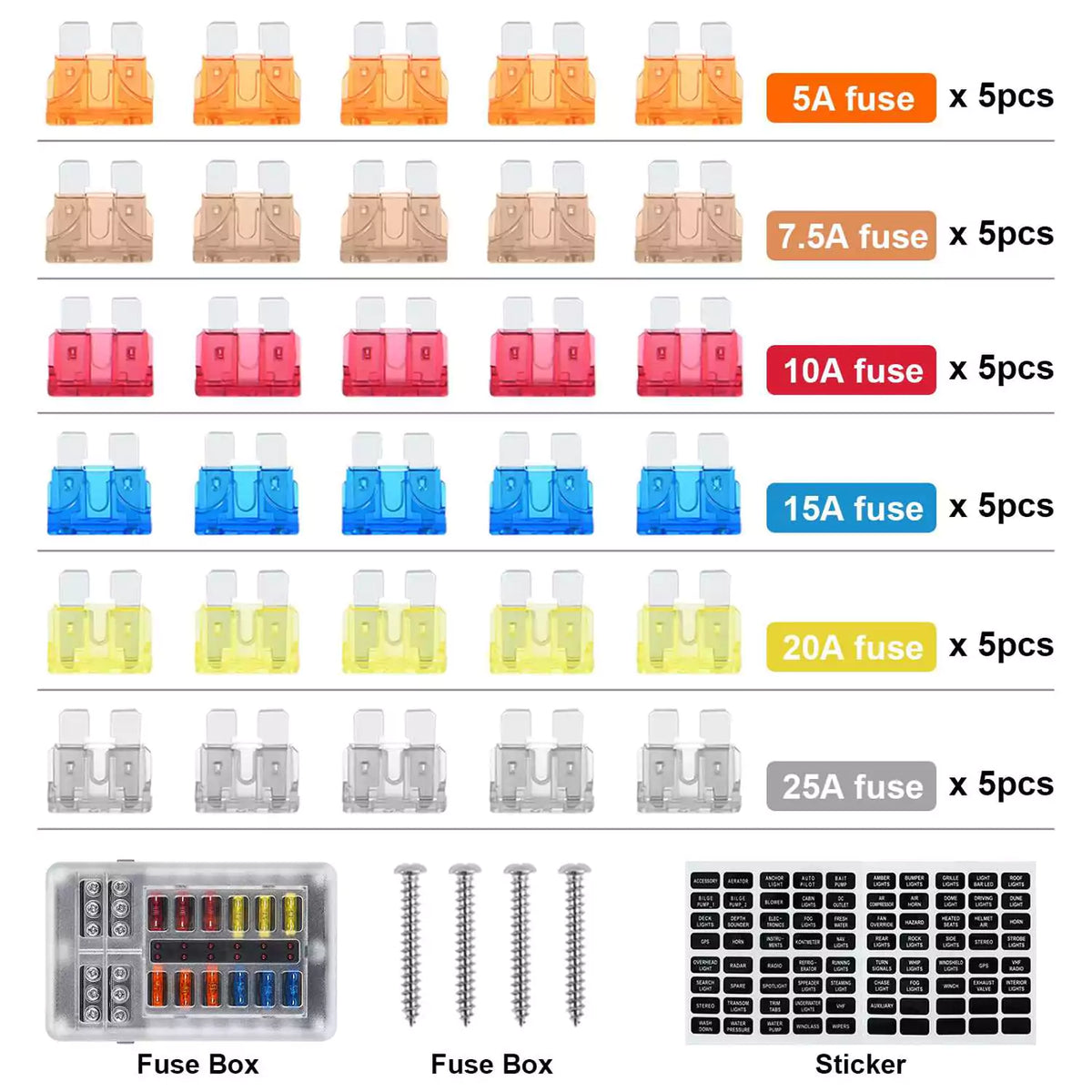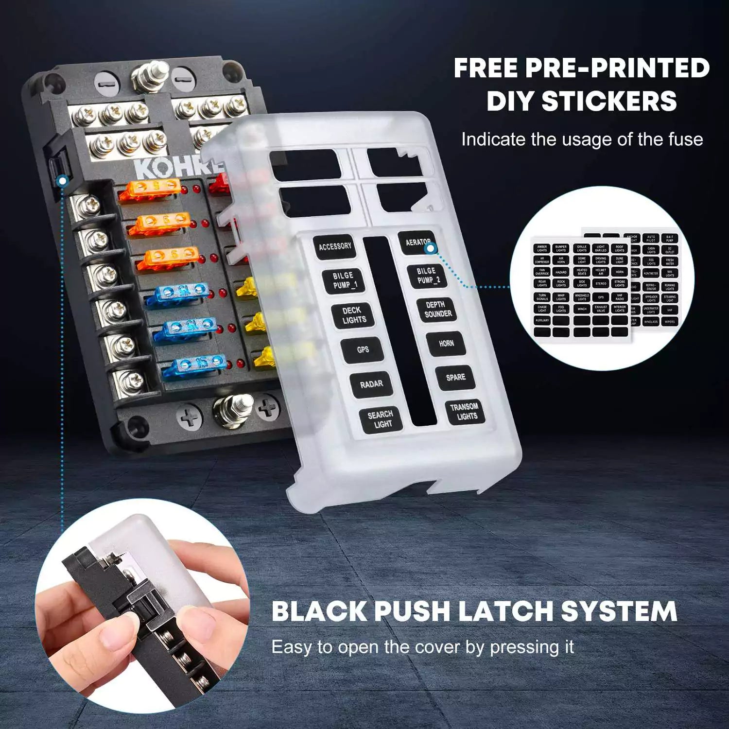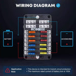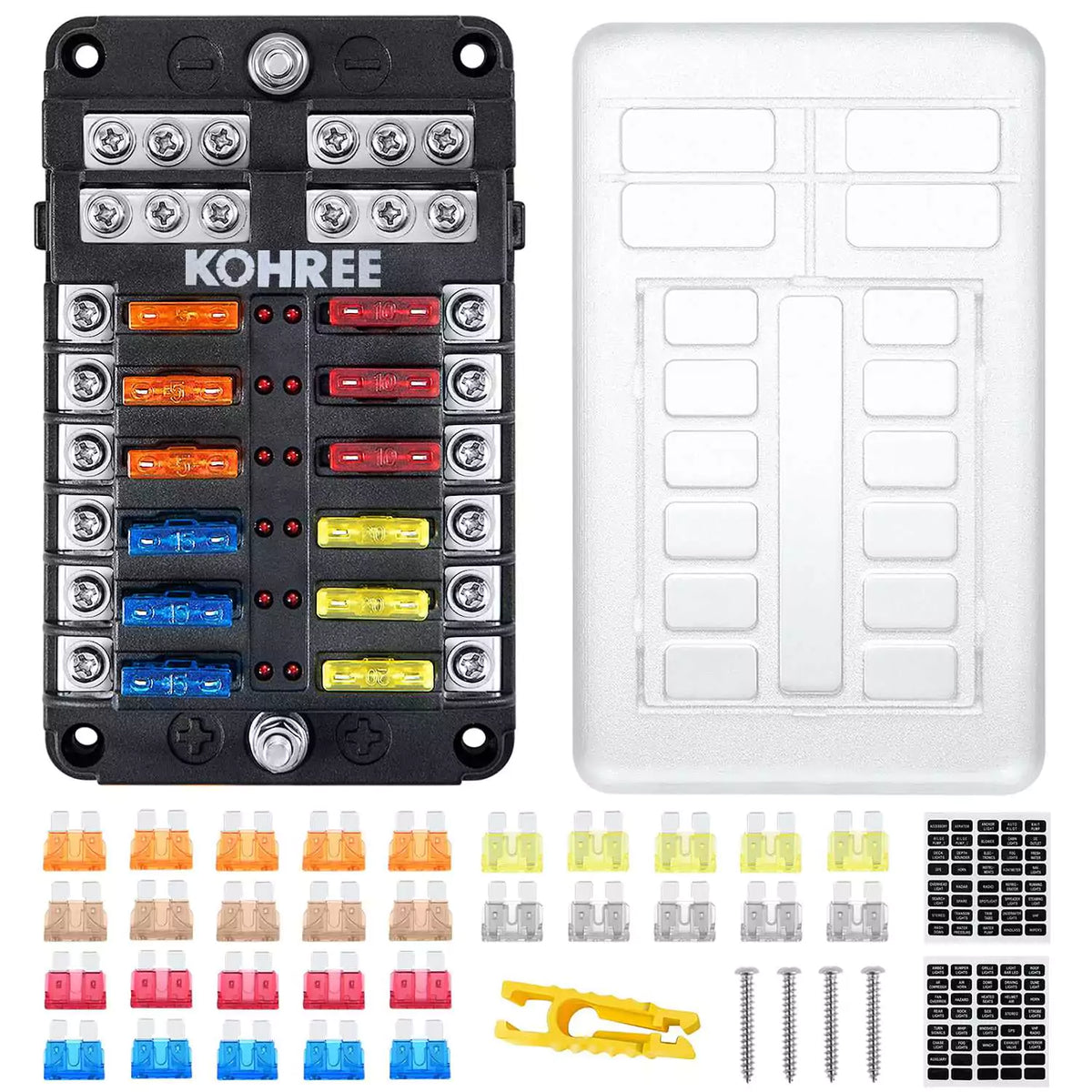 • Complete Fuse Box for a Car & Marine: The package includes 1x 12-way 12V fuse block, 30x blade fuses, 4x screws, 2x stickers, and 1x clip. If you encounter any issues with the Kohree marine fuse panel, feel free to contact us at any time. Our customer service team is always ready to assist you.