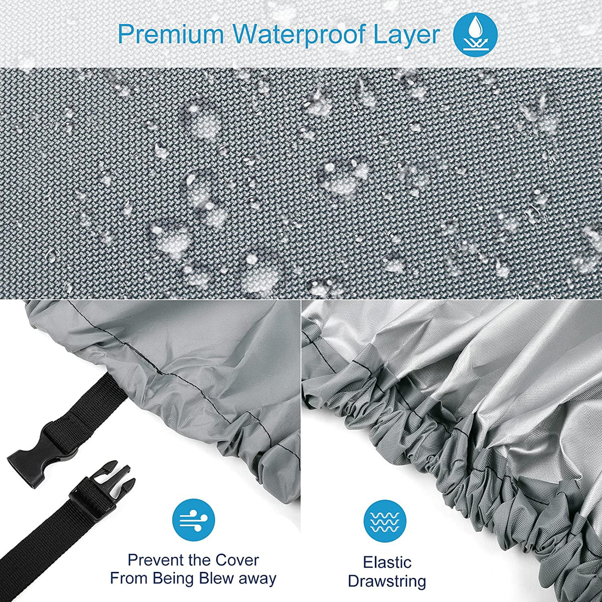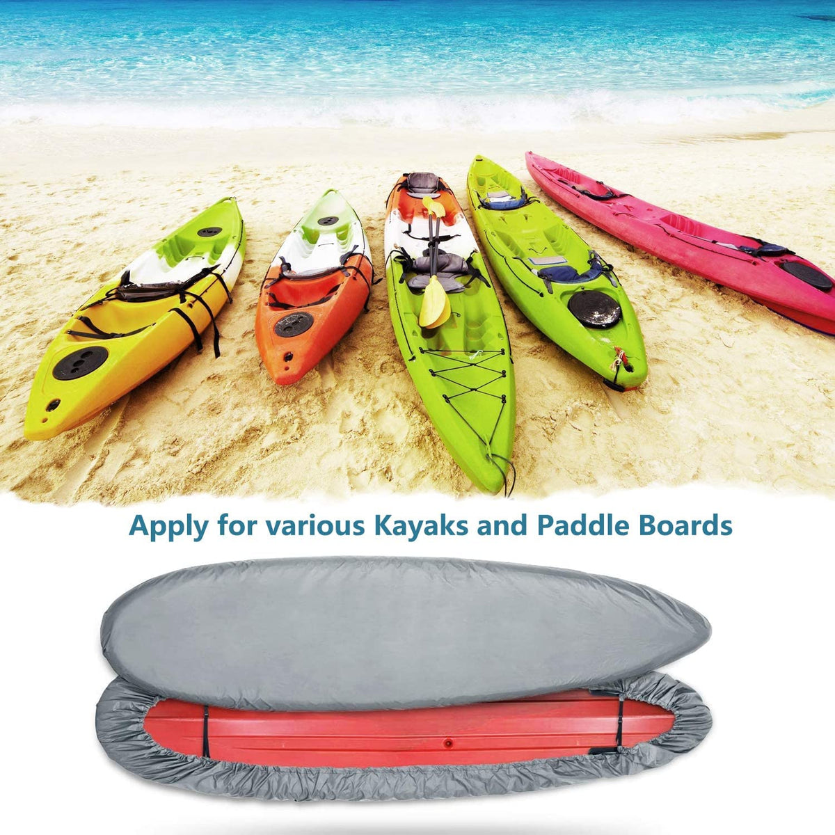 Die Kohree Kayak Cover ist ein zuverlässiger Ganzjahres-Schutz für Ihr Fischerboot, Kanu, Ruderboot oder Paddleboard. Diese Kajak-Aufbewahrungsabdeckung aus hochwertigem Polyester-Oxford mit einer silbernen Innenbeschichtung bietet bessere Wasserdichtigkeit, UV-Beständigkeit und Schutz vor Witterung, Schnee, Staub und Ungeziefer. Sie ist einfach zu verwenden und verfügt über einen integrierten elastischen Kordelzug, der ein schnelles An- und Ausziehen ohne Werkzeug ermöglicht. Sie bleibt sicher an Ort und Stelle, um Ihre Ausrüstung zu schützen.