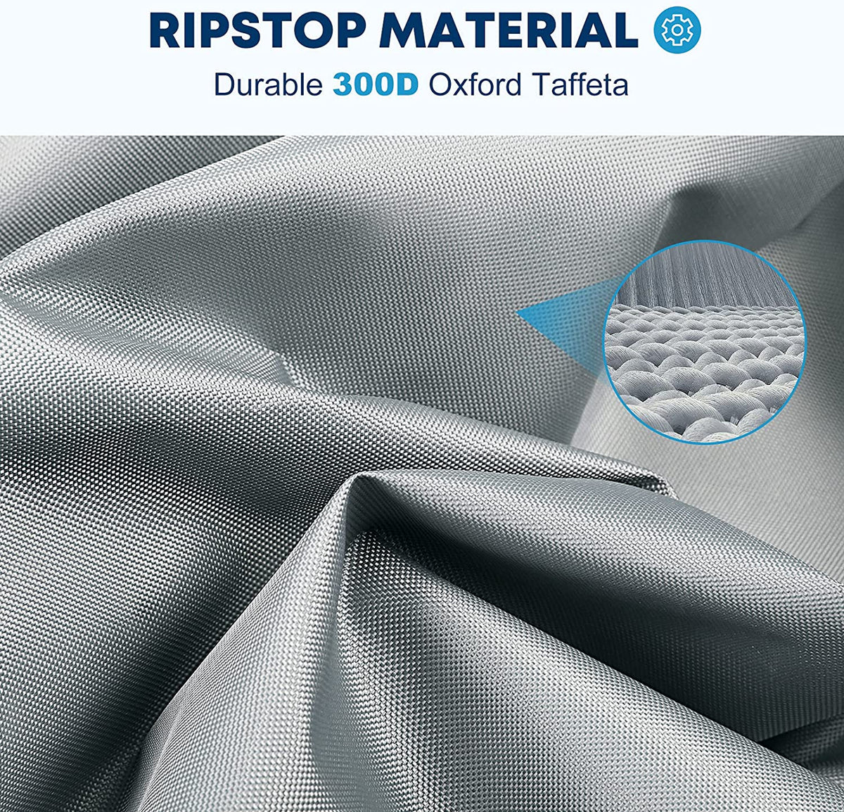 Winddichte Gurte: Zwei Gurte verhindern, dass die Abdeckung bei starkem Wind weggeweht wird und vermeiden, dass sich Regen auf der Oberseite sammelt, wodurch ein Zusammenfallen verhindert wird.