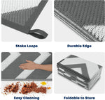 Reinigung und Lagerung sind einfach. Fegen Sie Schmutz einfach weg oder sprühen Sie ihn mit Wasser ab und lassen Sie ihn an der Luft trocknen. Wenn der Teppich nicht verwendet wird, kann er auf eine kompakte Größe zusammengefaltet werden und wird mit einer Tragetasche geliefert. Genießen Sie Ihren Außenbereich mit den 9 x 12 Fuß großen Outdoor-Teppichen von Kohree, perfekt für Wohnmobil-Camping, Terrassen, Schwimmbäder, Bootsdecks und mehr.